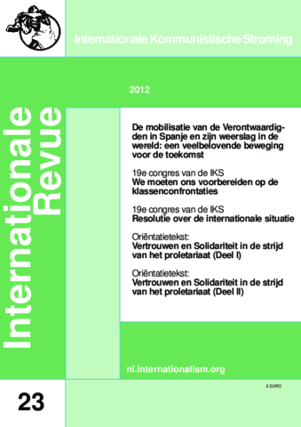 Document 19e Congres van de IKS: Resolutie over de internationale situatie De mobilisatie van de Verontwaardigden in Spanje en zijn weerslag in de wereld: een veelbelovende beweging voor de toekomst Oriëntatietekst: Vertrouwen en Solidariteit in de strijd van het proletariaat (Deel I) Oriëntatietekst: Vertrouwen en solidariteit in de strijd van het proletariaat (Deel II) 19e Congres van de IKS: We moeten ons voorbereiden op de klassenconfrontaties Book traversal links for Internationale Revue nr. 23 ‹ Internationale Revue 2012 Up 19e Congres van de IKS: Resolutie over de internationale situatie ›