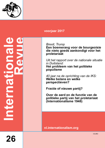 Document 40 jaar na de oprichting van de IKS: Welke balans en welke perspectieven? Fractie of nieuwe partij? Over de aard en de functie van de politieke partij van het proletariaat (Internationalisme nr. 38 – oktober 1948) Uit rapport nationale situatie Duitsland: Het probleem van het politieke populisme Book traversal links for Internationale Revue nr. 26 ‹ Internationale Revue 2017 Up 40 jaar na de oprichting van de IKS: Welke balans en welke perspectieven? ›