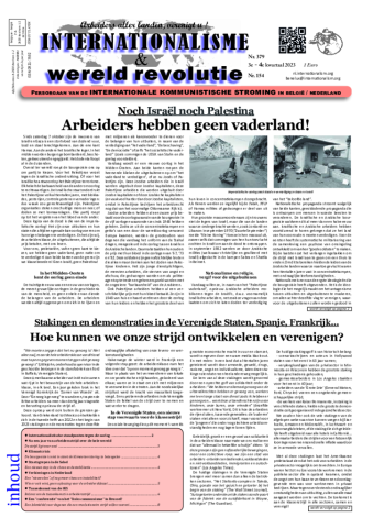 Document Arbeiders hebben geen vaderland! Balans van de tussenkomst van de IKS in arbeidersstrijd wereldwijd De bourgeoisie is niet in staat de klimaatverstoring te beteugelen De strijd ligt voor ons! Een "conferentie" van het "linkscommunisme" in Brussel? Een puur lokmiddel voor zij die een revolutionaire strijd willen voeren! Een "nieuw elan" of nog meer chaos en instabiliteit? Wie er ook wint, geen oplossing voor de arbeidersklasse! Internationalistische standpunten tegen de oorlog Staatsgrepen in de Sahel: een nieuwe stap in de chaos en destabilisatie van de regio Stakingen en Demonstraties in de Verenigde Staten, Spanje, Griekenland, Frankrijk, ...Hoe onze strijd ontwikkelen en verenigen? Book traversal links for Internationalisme nr. 379 - 3e-4e kwartaal 2023 ‹ Tegen crisismaatregelen en bezuinigingen: Het proletariaat recht wereldwijd zijn rug! Up Arbeiders hebben geen vaderland! ›