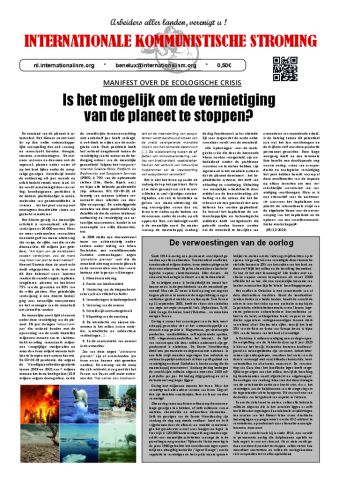 Document Is het mogelijk om de vernietiging van de planeet te stoppen? De verwoestingen van de oorlog Geconfronteerd met de ecologische crisis: Kunnen kapitalistische staten echt veranderen? "Groen" kapitalisme kan niet bestaan Kunnen burgerbewegingen de wereld veranderen? Het communisme is de enige echte oplossing voor de ecologische crisis Welke maatschappelijke kracht kan de revolutie maken? De impasse van het activisme in organisaties voor de “de verdediging van het milieu” Aanvullende lectuur Book traversal links for Manifest over de Ecologische crisis. ‹ Het kapitalisme leidt tot de vernietiging van de mensheid... Alleen de wereldrevolutie van het proletariaat kan er een einde aan maken Up Is het mogelijk om de vernietiging van de planeet te stoppen? ›